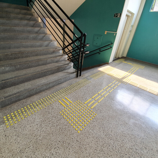 O sistema de autoadesivo de alta performance da Mozaik garante acessibilidade em ambientes com pisos lisos, polidos e pisos vinílicos**. Sua instalação é simples e rápida, permitindo a liberação de tráfego logo após a fixação dos elementos.